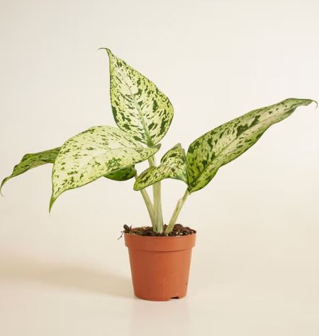 La Dieffenbachia ‘Copo de Nieve’ hace honor a su nombre: con sus hojas moteadas, aporta un toque de calidez invernal a tu hogar.