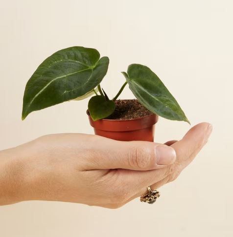 El Anthurium Forgetii es realmente especial. Sus hojas redondas y aterciopeladas destacan al instante, sin la típica muesca en la base, algo poco común entre los anturios.